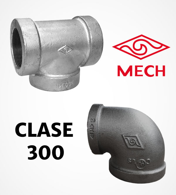 CONEXIONES DE FIERRO MALEABLE NEGRO Y GALVANIZADAS CLASE 300 EXTREMOS NPT MARCA MECH.