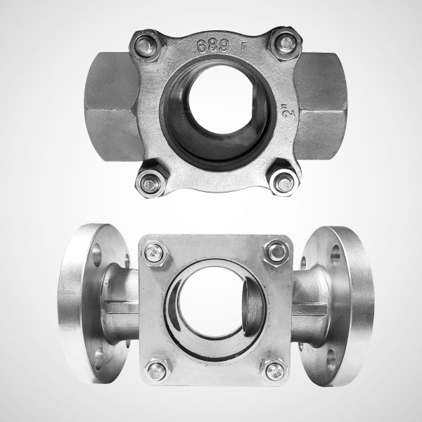 VISOR PARA VAPOR O CONDENSADO CON DOS VIDRIOS DE SEGURIDAD (SUPERVISA CONDICIONES DEL FLUIDO DE UNA TRAMPA DE VAPOR) DE ACERO INOXIDABLE 316 (CF8M) TIPO INDUSTRIAL MARCAS HGV o SUN EXTREMOS ROCADOS NPT ANSI B1.20.1 Y EXTREMOS BRIDADOS CLASE 150 ANSI B16.5.